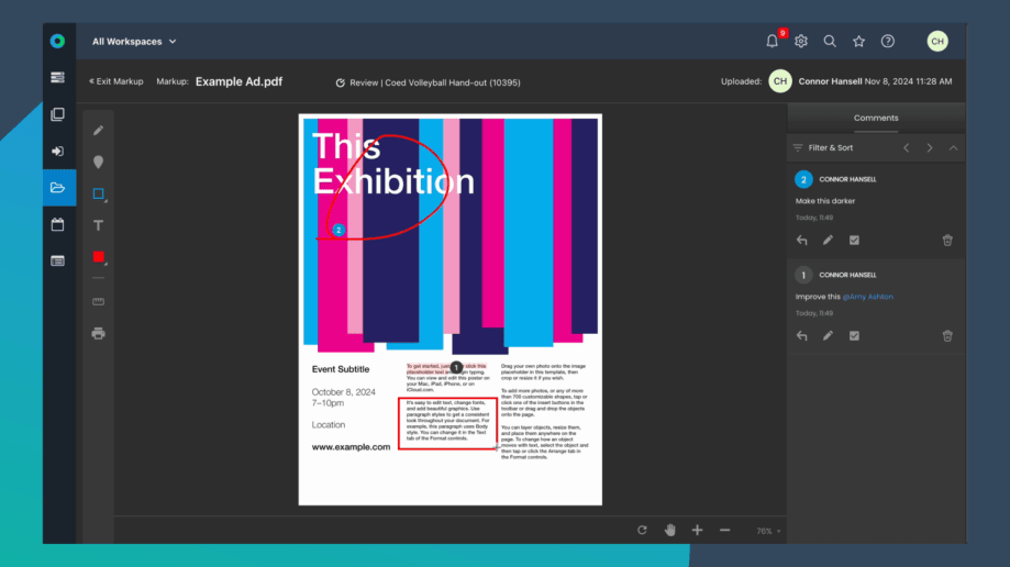 - Mark up assets (PDFs, images, videos) with contextual feedback