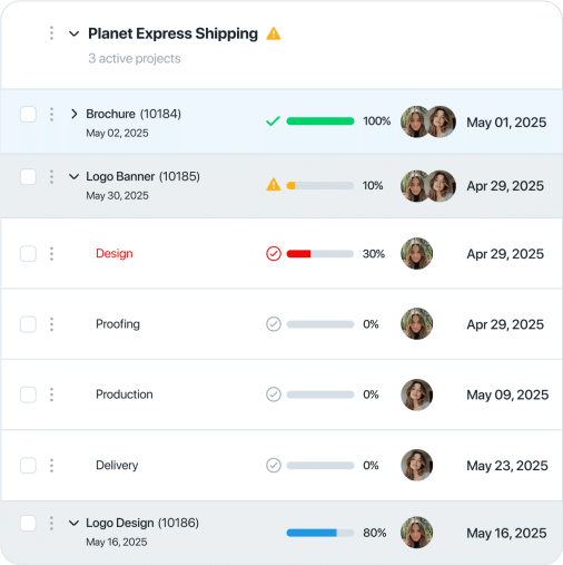 Get real-time visibility into your entire client portfolio in one screen. Drill down to the project and task level to make sure no deadlines are missed.